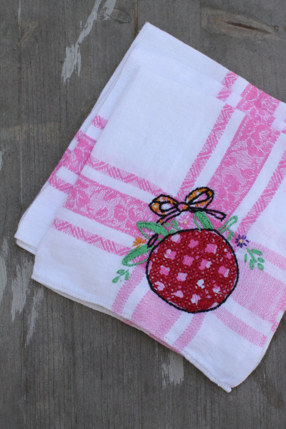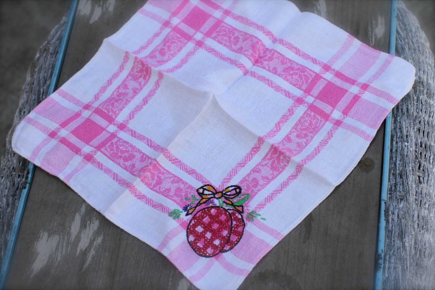 Set of 4 Vintage, Hand-Embroidered, Cotton Cloth Napkins